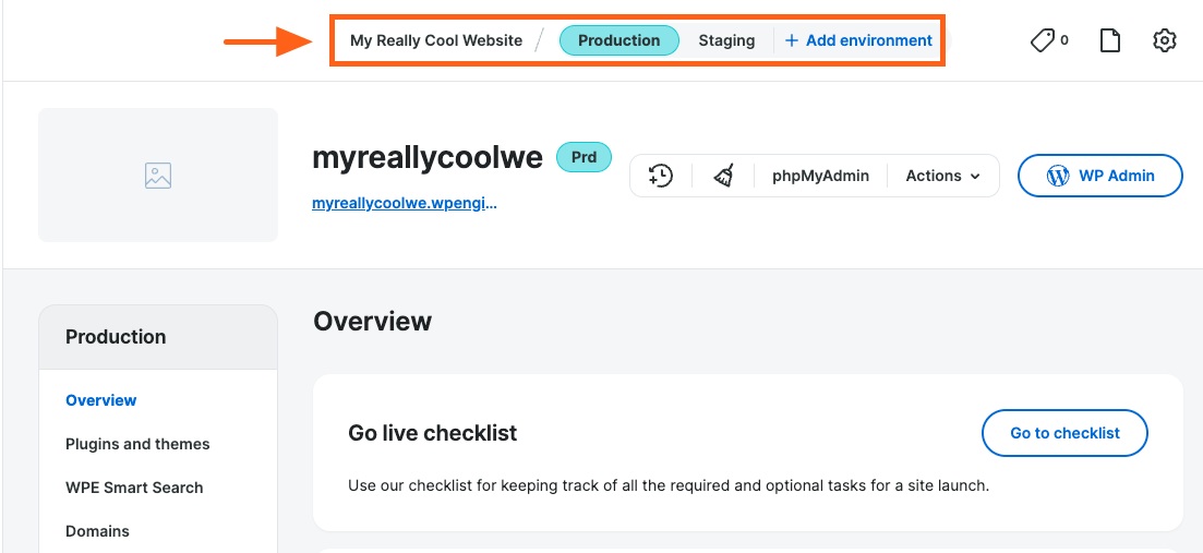 For example, if you have been working on your website in the staging environment and now you are ready to publish everything to your live website, you can push staging to production.