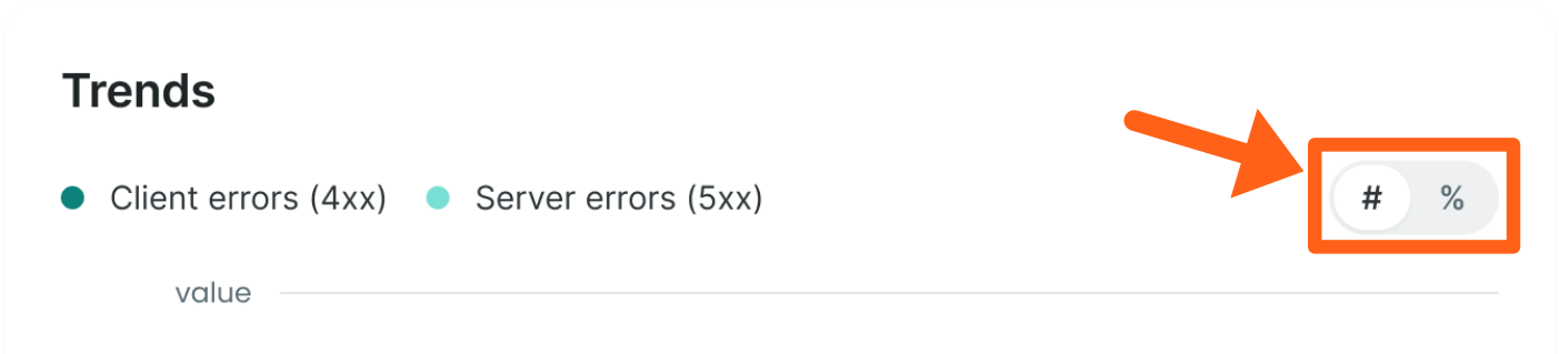 The trends graph shows either the count of each error code, or the percentage of each error code by day, for your selected date range. You can use the toggle switch in the top right to switch between count and percentage.