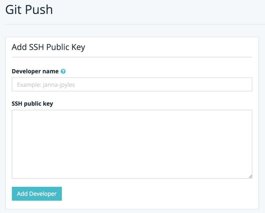 - Under Project Settings, copy your Project SSH Key and add the key in your User Portal. Give it a name (Codeship-yourname for example) and click Add Developer.