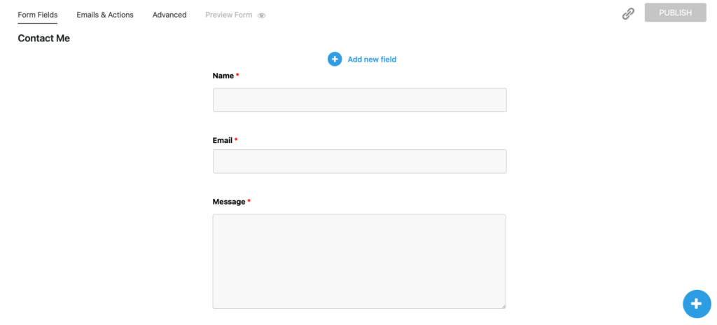 For this example, we’ll stick with the free tier of Ninja Forms and use its default fields: Name, Email, and Message.