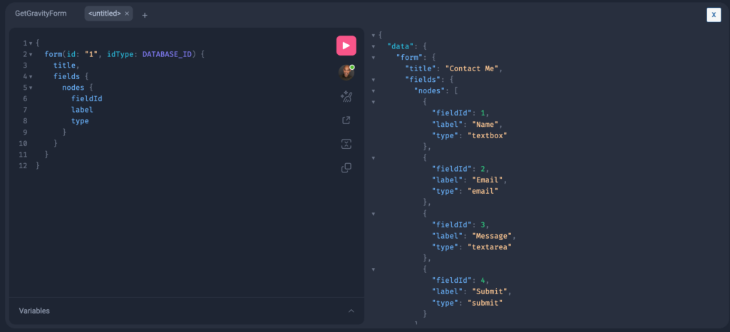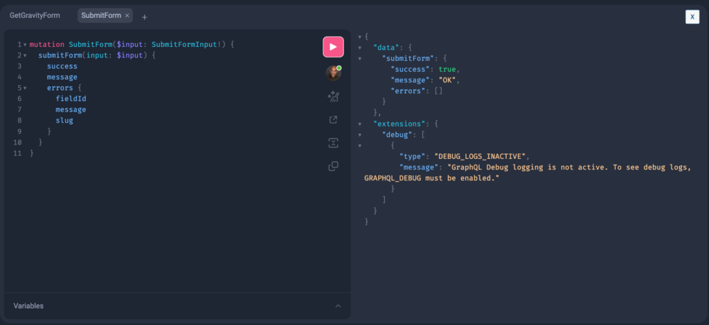 After downloading the WPGraphQL for Ninja Forms plugin, let’s test that it works by requesting and submitting data to its API: