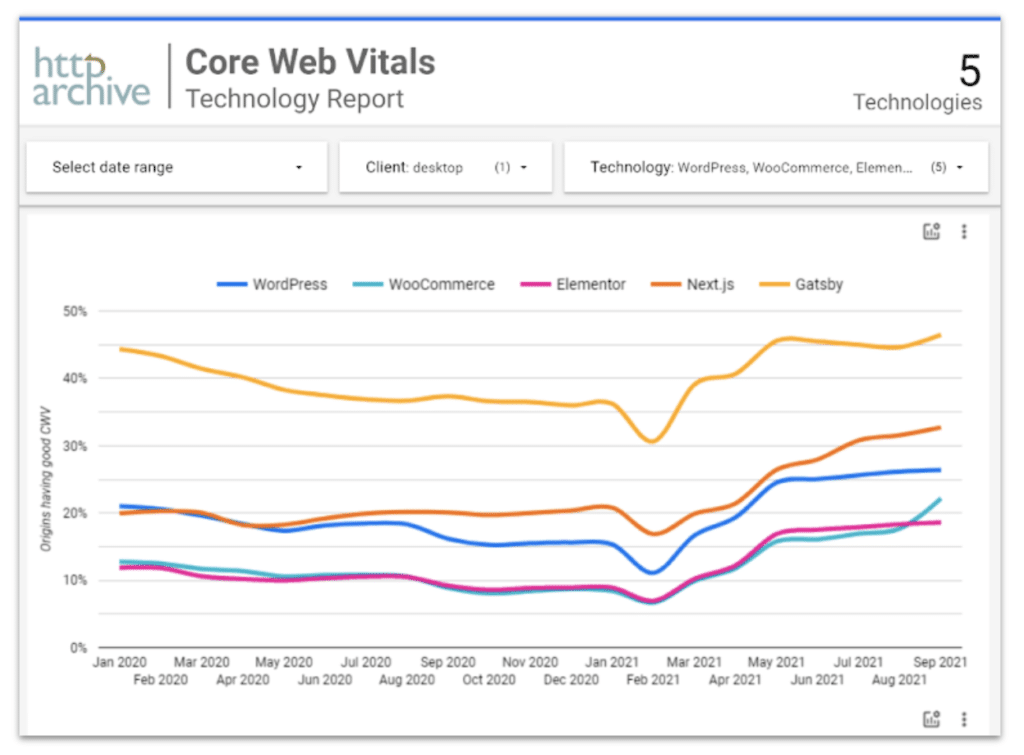 In fact, headless websites often crush Core Web Vitals scores right out of the gates, with more than 50% of headless (front-end) frameworks regularly achieving healthy Core Web Vitals scores.