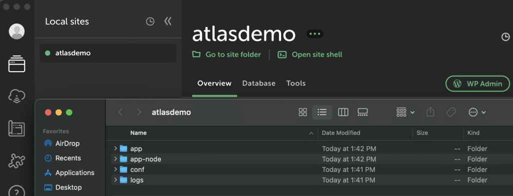Deploy a WordPress application directory ( i.e app/public/wp-content/) from an Atlas project in Local that is also versioning a Javascript application (ie. /Local Sites/atlasdemo/.git).