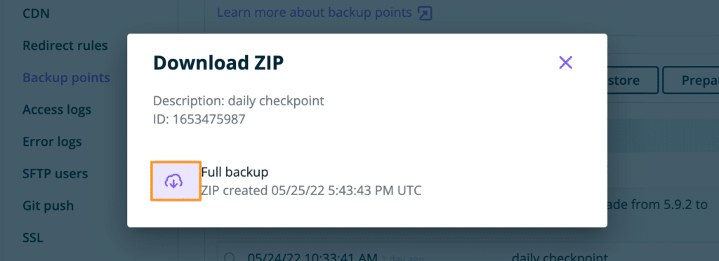 - An email alerting that the backup zip file is ready for download will be sent.