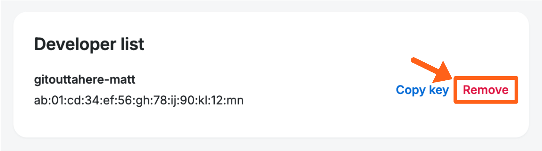 - Click Remove next to the developer’s SSH key to revoke access.